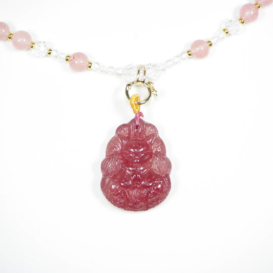 お願い狐様・天然石ネックレス・ストロベリークォーツ・ CMJHP001